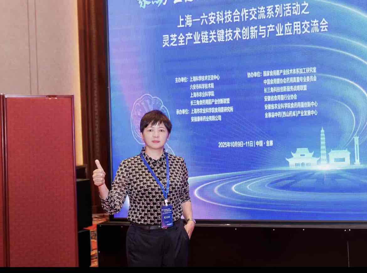 她对本次会议印象深刻:"来自沪六两地政府、国家食用菌产业技术体系专家等100余人参会,共同探讨灵芝全产业链创新发展的新路径。"