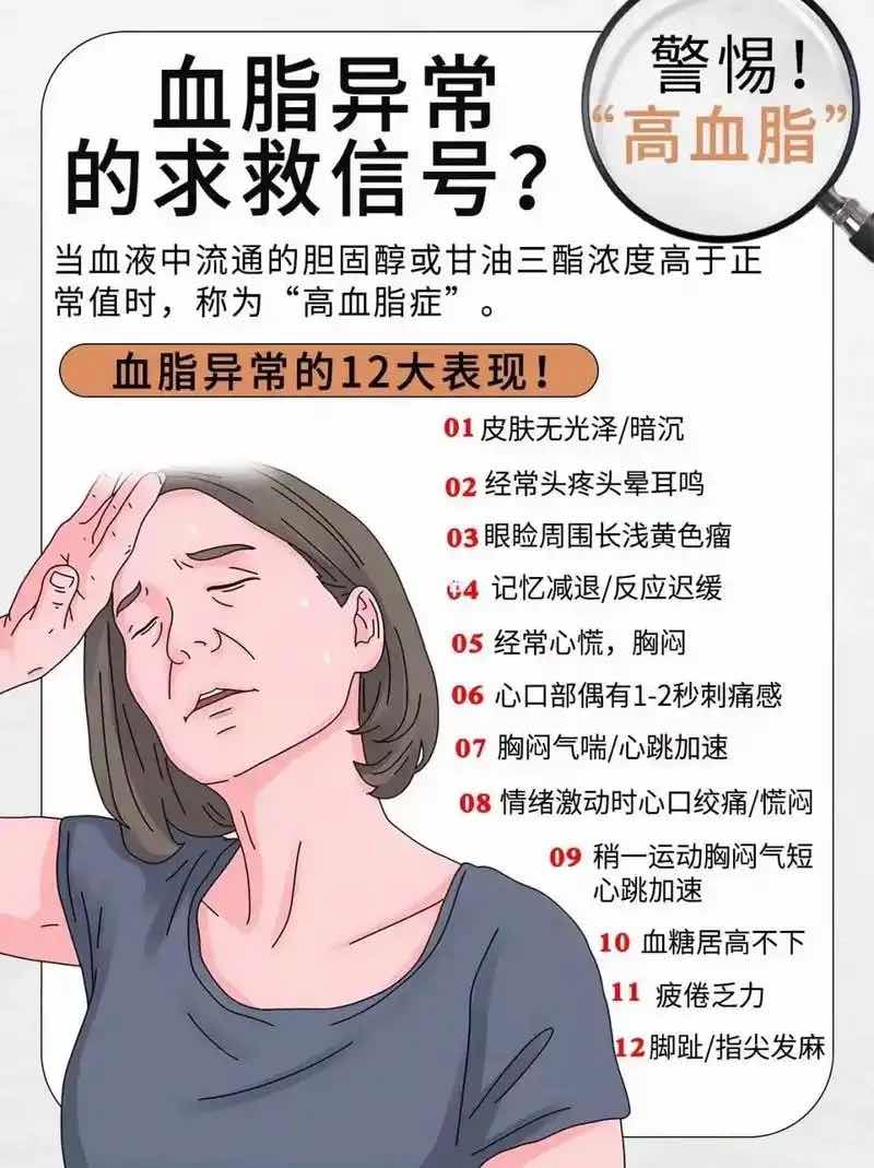 3. 规律运动:每周坚持3-5次轻中度有氧运动,如快走、慢跑、太极拳,每次30分钟以上,促进血液循环,改善脂质代谢。
